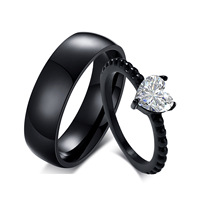 خاتم زوجين جديد 6 من الزركون الأسود والأمريكية خاتم من الفولاذ المقاوم للصدأ