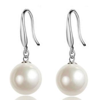 18K blanco plateado pendiente largo para las mujeres oído perla pendientes para las mujeres boda pendiente de plata