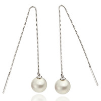 18K blanco plateado pendiente largo para las mujeres oído perla pendientes para las mujeres boda pendiente de plata