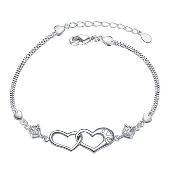 Versione coreana braccialetto di zircone doppio cuore per le donne