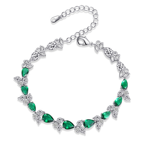 Thời Trang Đơn Giản Bi-màu Quyến Rũ Vòng Đeo Tay Ngọc Lục Bảo Hình Giọt Nước Mới