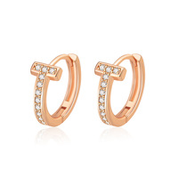 Hot Selling Double T Zircon Earrings in Europe and America, Simple and Elegant Korean Edition Earrings for Women