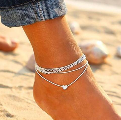 Новый модный стиль Пляж любовь многослойный ножной браслет богемный в форме сердца Персиковое сердце двухслойный женский браслет